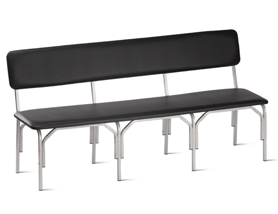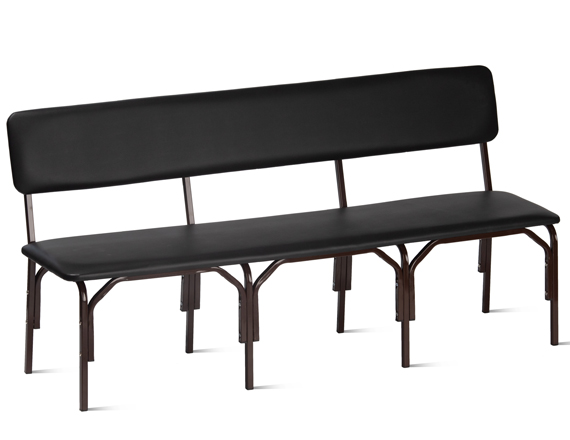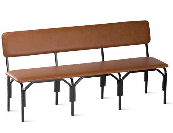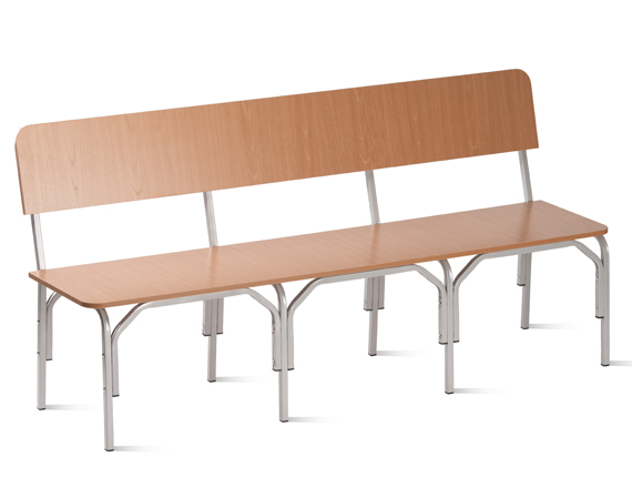 Металлокаркас изготовлен из стального квадратного профиля 20х20х1,2 мм и состоит из основания и трёх секций ножек, крепящихся с помощью гильз межсекционной стяжки и винтов М6. Металлокаркас окрашен защитным полимерно-порошковым покрытием. Сиденье и спинка изготовлены из ДСП толщиной 16 мм и обтянуты поролоном толщиной 20 мм и мебельным кожзаменителем. Нижняя часть сиденья и задняя сторона спинки обита нетканым материалом (спанбондом). Мягкие части скамьи крепятся к металлокаркасу с помощью саморезов 4х30 мм. Допустимая нагрузка на одно посадочное место 100 кг.