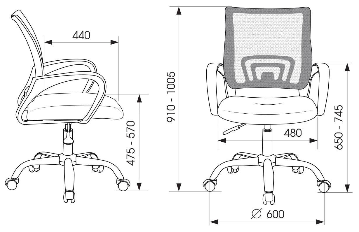 Материал обивки: cпинка – сетка, сиденье – ткань.