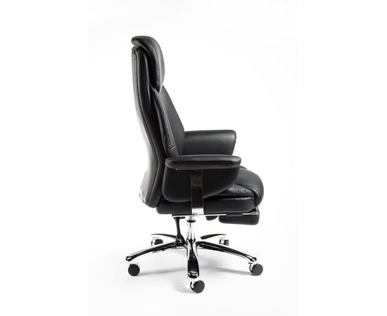 Кресло для руководителя высшего звена Парламент своим внешним видом говорит, что его владелец не разменивается по мелочам. Сохранив классические черты, кресло Парламент привлекает внимание оригинальными решениями в стиле Хай-Тек. Обивка выполнена из высококачественной экокожи, в соответствии с современными тенденциями защиты окружающей среды. Роскошное кресло также имеет выдвижную опору для ног, которая позволяет принять максимально комфортное положение, недоступное в большинстве других моделей. Почувствуйте себя Big Boss. Выдвижная подножка для поддержки ног позволяет принять лежачее положение в минуты отдыха, снимает нагрузку с позвоночника, улучшает кровообращение. Хромированный газ-патрон, ролики с вставкой "хром", хромированные части подлокотника делают модель стильной, с элементами дизайна в стиле хай-тек. Кресло подойдет людям высокого роста, плотной комплекции.Максимальная нагрузка 120 кг.