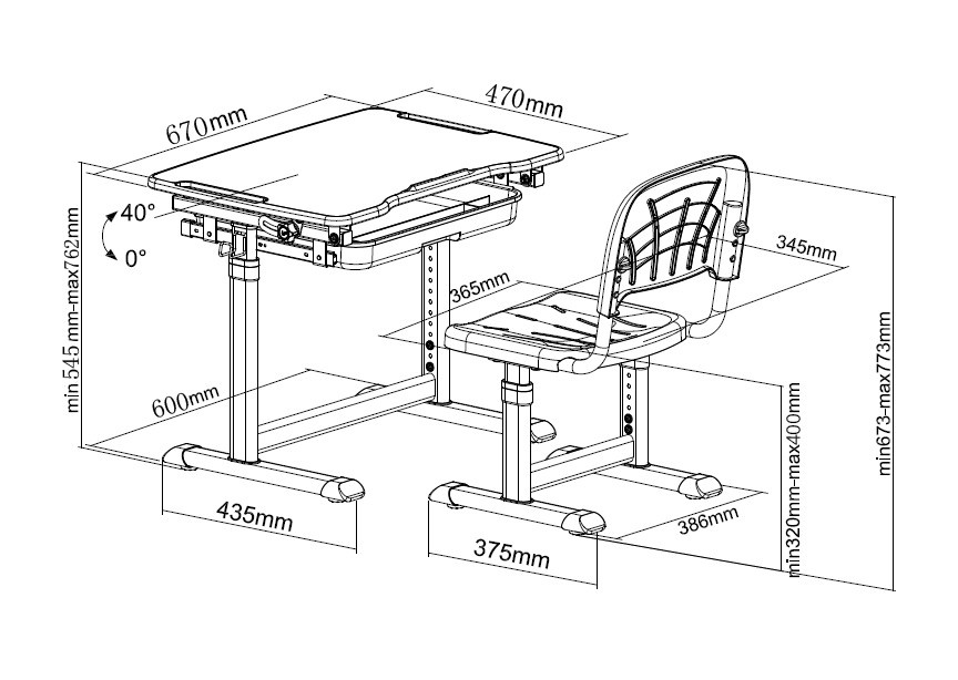 Поверхность учебного стола можно наклонять до 40 ° для удобного письма, чтения и рисования.