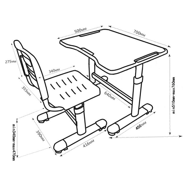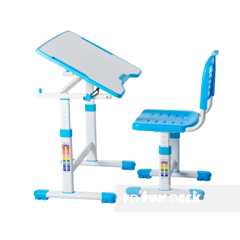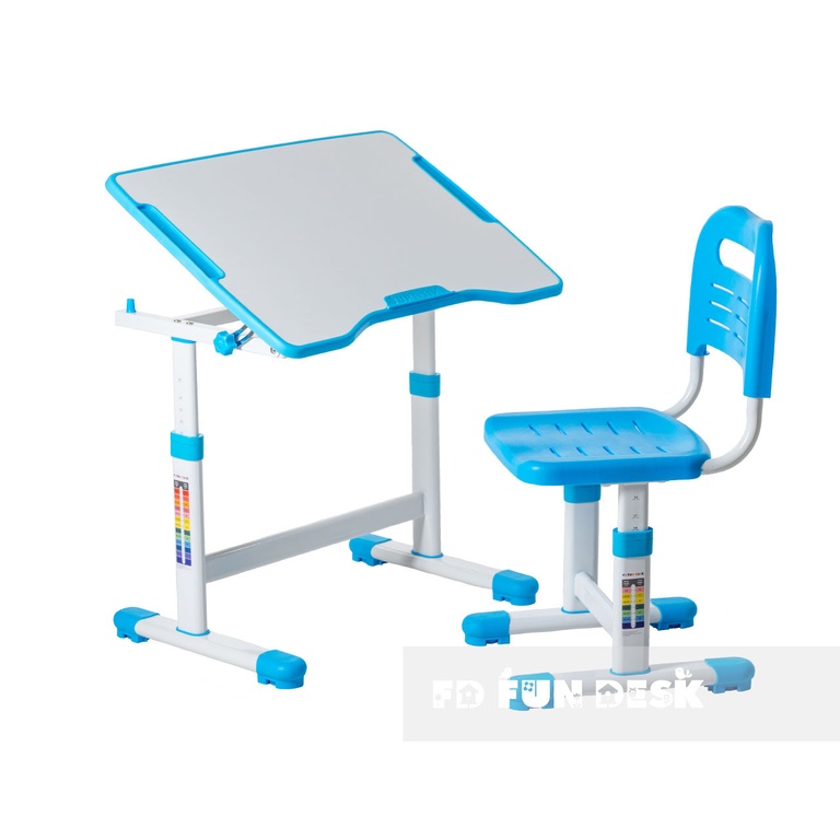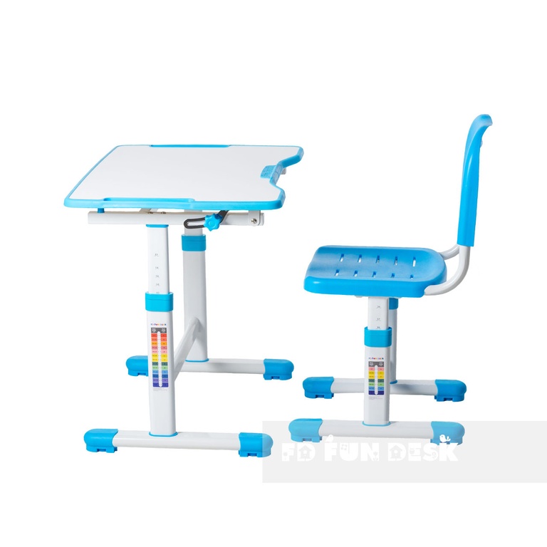 Очень важно, чтобы ребенок правильно сидел за столом при выполнении домашнего задания. Sole II Blue предназначен для обеспечения более комфортной среды обучения. Стол и стул могут быть легко отрегулированы по высоте, что позволяет оптимально адаптировать его под соответствующий рост ребенка. Поверхность учебного стола можно наклонять до 60° для удобного письма, чтения и рисования.