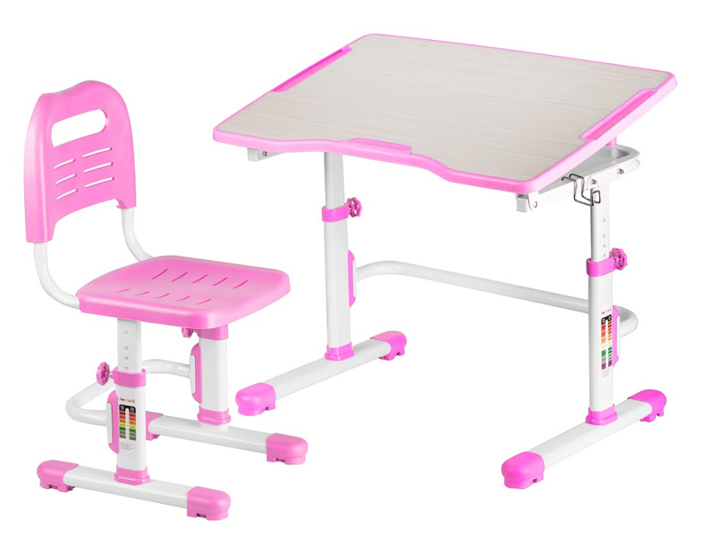 Стол и стул могут быть легко отрегулированы по высоте, что позволяет оптимально адаптировать его под соответствующий рост ребенка. Поверхность учебного стола можно наклонять до 60° для удобного письма, чтения и рисования.
