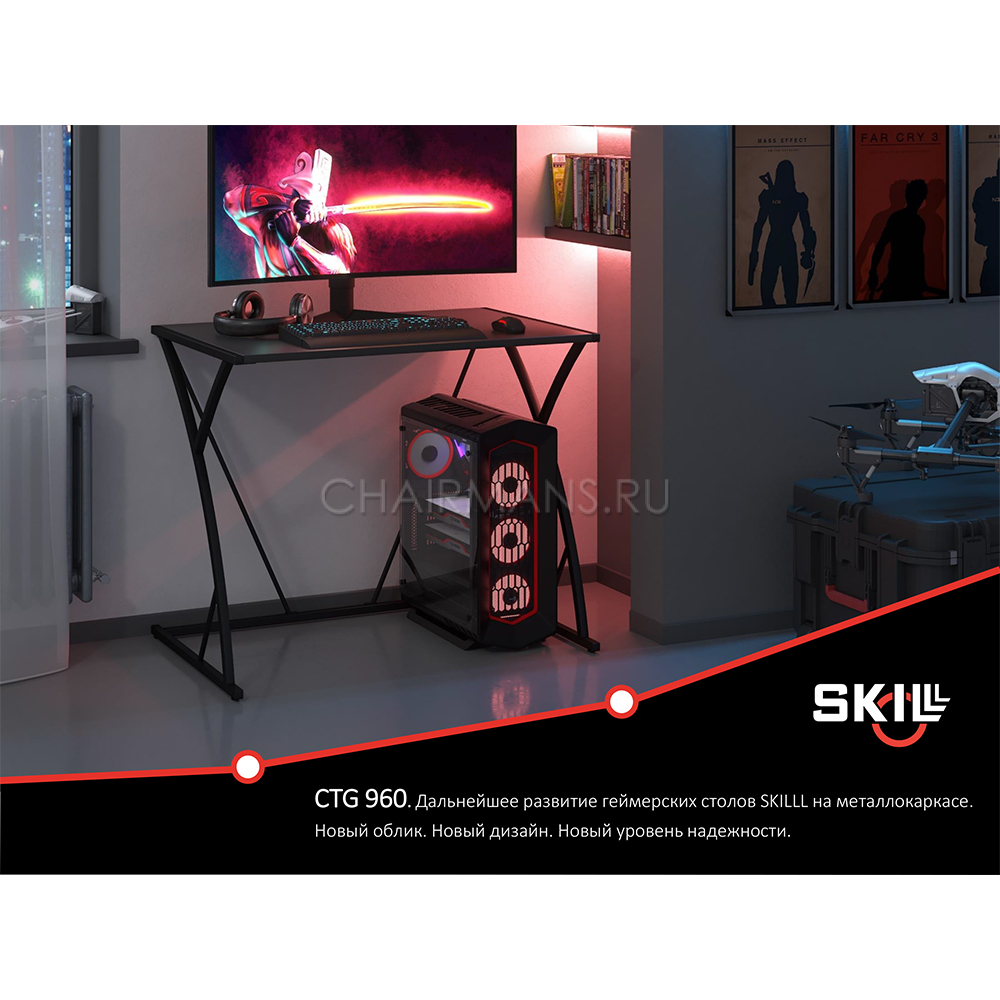 CTG 960. Дальнейшее развитие геймерских столов SKILLL на металлокаркасе. Новый облик. Новый дизайн. Новый уровень надежности.