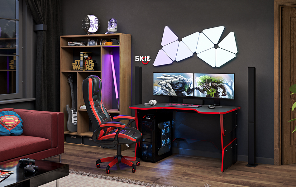Цвет - Антрацит. Кромка ПВХ т.2 мм, цвет - Красный.